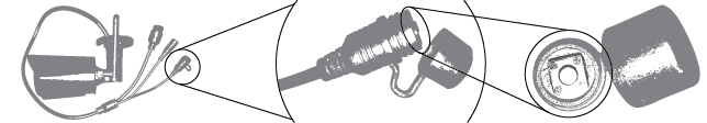 - Reset the camera by finding the reset button, under the cap, on the third cord attached to the camera.